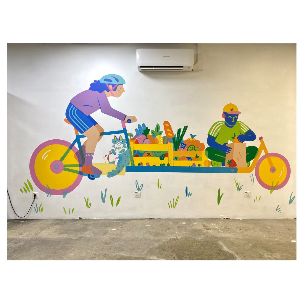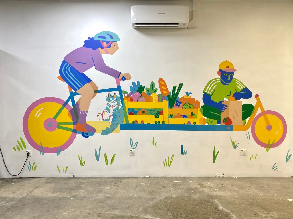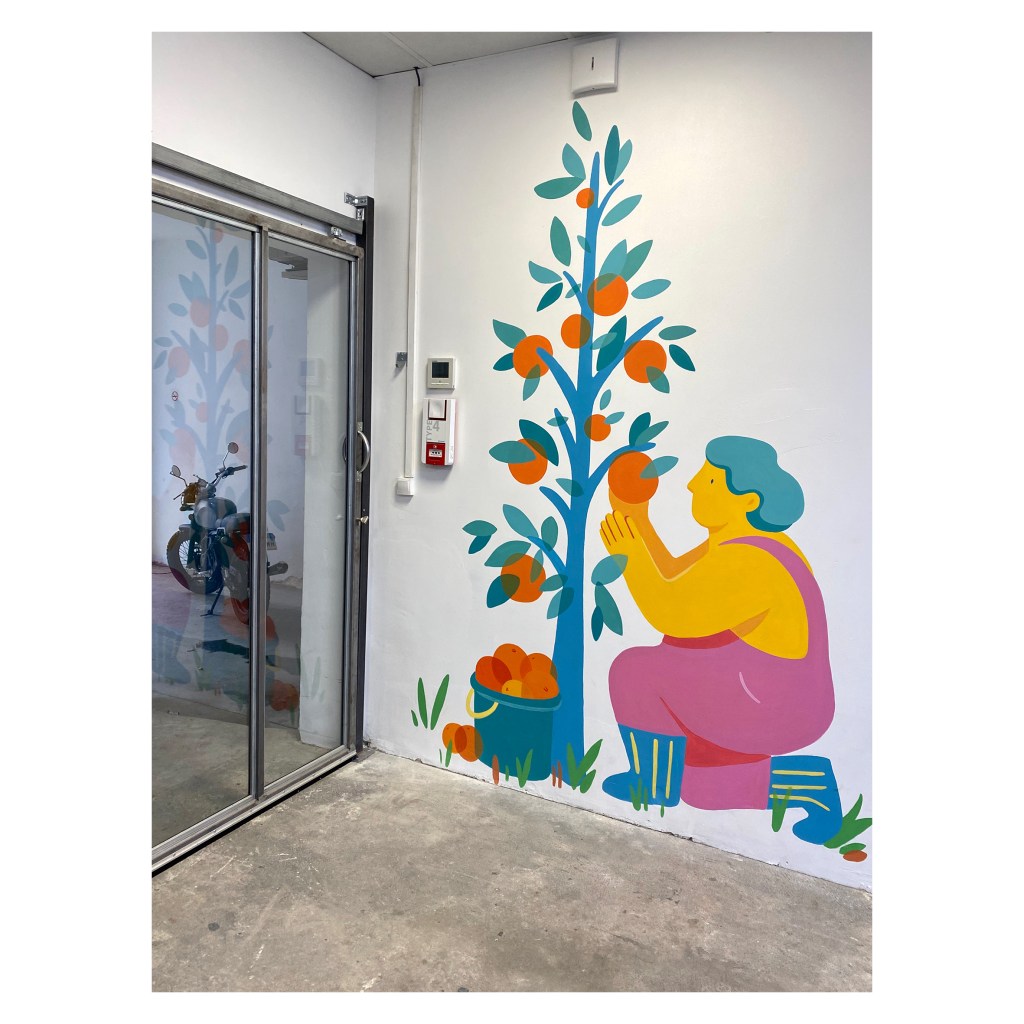 Fresque réalisée pour le local partagé par les associations Cantina et Les Coursier.es solidaires de Marseille.
